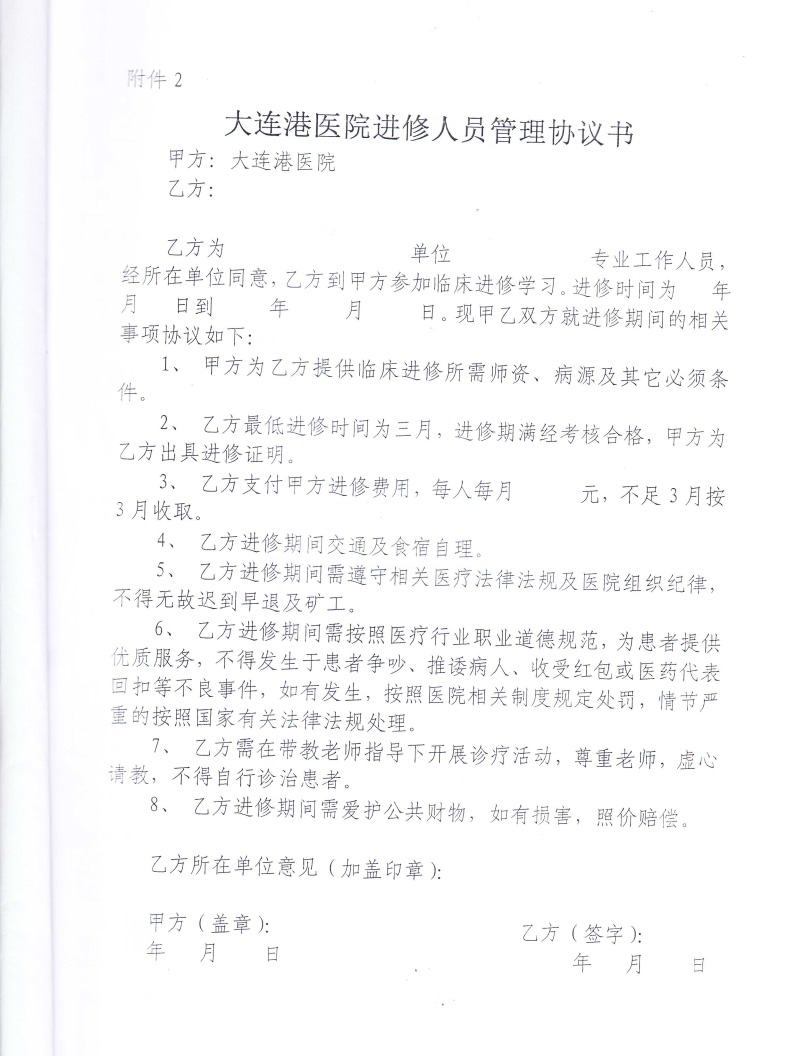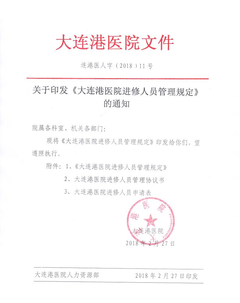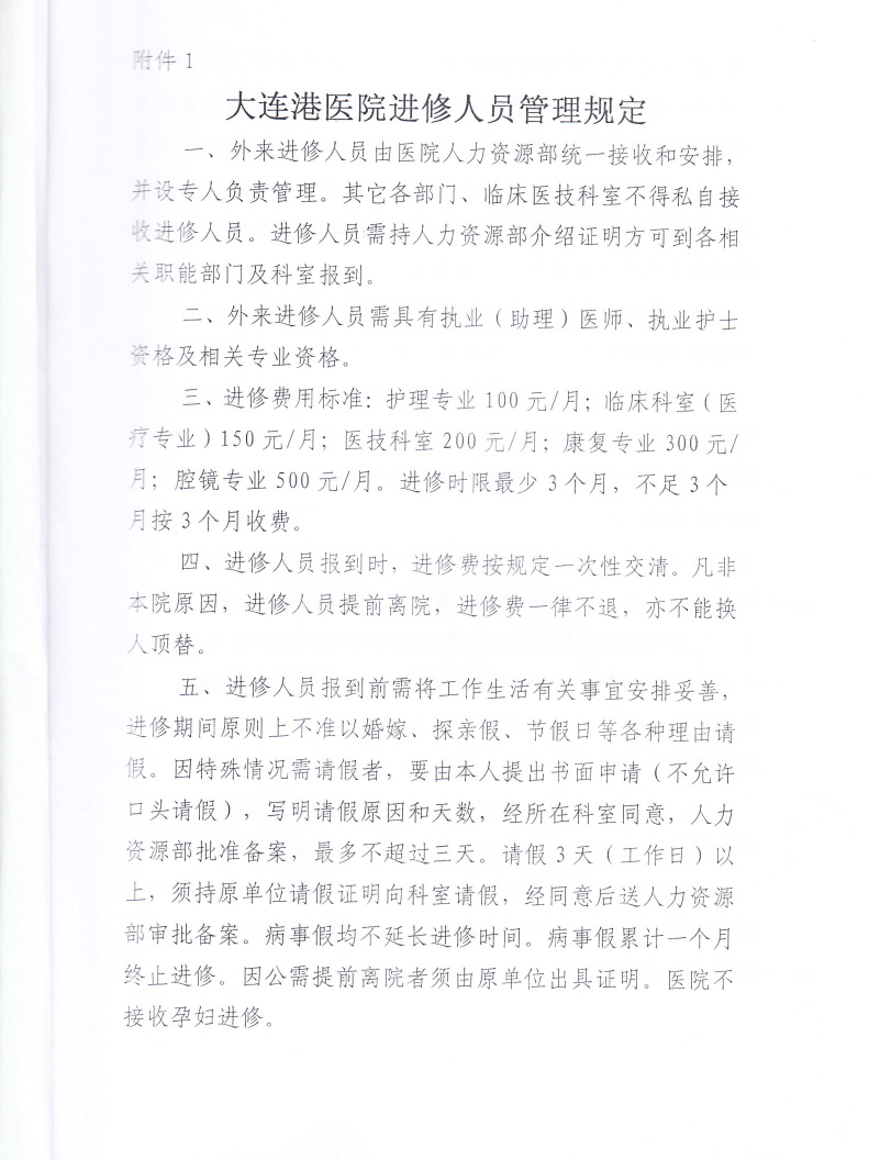 关于印发 《大连港医院进修人员管理规定》 的通知